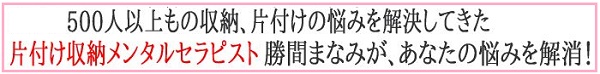ずぼらで優柔不断な性格でお悩みのあなたに、片付け収納メンタルセラピスト勝間まなみが、とっておきのお悩み解決法を伝授します。